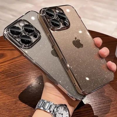 Compatible iPhone 16 Pro Max Phone Case with Lens Film Apple 15 Transparent Cover 14 Electroplated Starry Sky Glitter
