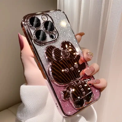 Suitable for iPhone 17 Phone Case Gradient Glitter Rabbit Mirror Apple 16 Silicone 15 Pro Max Stand